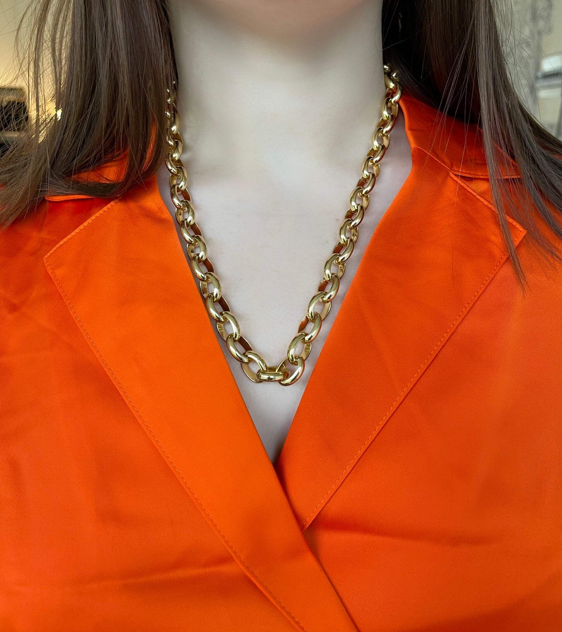 Chaine dorée en aluminium maille jaseron ovale 11,5mm, origine Europe.